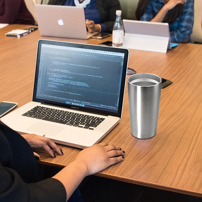 20 oz Tumbler Coffee Tavel Tumblers Bulk with Lid Stainless Steel Double Wall Vacuum Insulated Mug Powder Coated Cups fit Car Cupholder for Hot and Cold - Stainless Steel, 8Pack