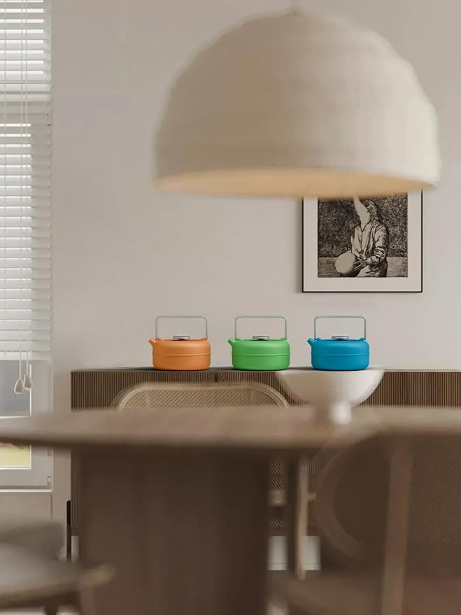 Toptier Teapot with Removable Infuser, Cast Iron Tea Kettle Stovetop Safe, Solid Geometry Cylinder Design Tea Pot Coated with Enameled Interior for 27 Ounce (800 ml), Emerald Green