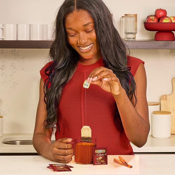 Twinings Chai Black Tea Individually Wrapped Bags, 100 Count (Pack of 1), Richly Blended with Warm Spices, Caffeinated, Enjoy Hot or Iced, 100 Teabags