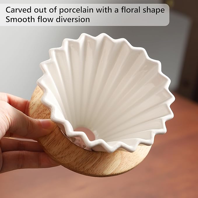 - ELEGANT DESIGN: Carved out of porcelain with a floral shape. The unique coffee dripper makes you brew coffee looks very elegant and professional. Suitable for 1-2 cups filter paper . Suitable for both commercial and home use, perfect gift for any coffeeholic.