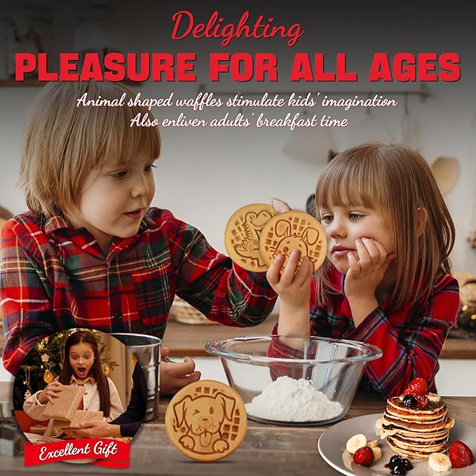 - [Versatile Pattern Options]: The Fun waffle maker, equipped with 8 interchangeable 4.5'' plates, transforms into a mini dino, rabbit, puppy, pancake, and heart-shaped waffle maker, along with producing traditional waffles.