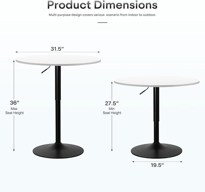 - Height Adjustable Design: The tall bar table comes with a convenient gas lift mechanism, allowing for seamless height adjustment from 27.5" to 36" to suit your preferences, making it versatile for various uses and spaces.