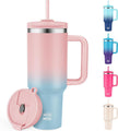 WETOWETO 40oz Tumbler with Handle | Insulated Stainless Steel Travel Mug | 34Hrs Cold & 10Hrs Hot Retention | 100% Leakproof Lid & Straw | Dishwasher Safe + Car Cup Holder Fit (Pink-Blue Gradient)