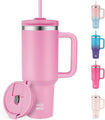 - 【Portable Large-Capacity Tumbler with Handle】-This 40 oz tumbler holds a substantial amount of beverage, reducing the need for frequent refills. The handle is ergonomically designed for a comfortable and secure grip. The non-slip exterior ensures safe handling even in wet conditions, making it ideal for those who work long hours or engage in outdoor activities.Additionally, the tumbler comes with a spring clip, allowing you to hang it wherever you like for convenient storage