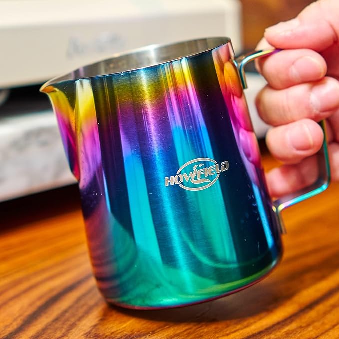 - 【Barista-Grade Milk Frothing Pitcher】Crafted with 18/8 stainless steel, our coffee art tool features triple-layer rust-resistant construction that withstands daily espresso machine use. The food-safe mirror finish meets commercial coffee standards while elevating your home barista setup. Thickened base prevents warping even at 160°F+ steaming temperatures.