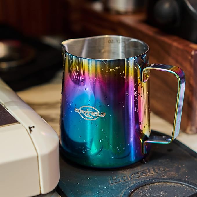 - 【Barista-Grade Milk Frothing Pitcher】Crafted with 18/8 stainless steel, our coffee art tool features triple-layer rust-resistant construction that withstands daily espresso machine use. The food-safe mirror finish meets commercial coffee standards while elevating your home barista setup. Thickened base prevents warping even at 160°F+ steaming temperatures.