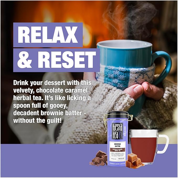 - DECADENT FLAVOR PROFILE: Indulge in the rich, chocolatey goodness of our brownie batter herbal tea. This expertly crafted blend delivers a smooth and satisfying experience with every sip. Enjoy the luscious taste of chocolate and caramel notes that will satisfy your dessert cravings without any of the guilt. Whether you prefer it hot or iced, this tea provides a comforting and delightful beverage any time of day.