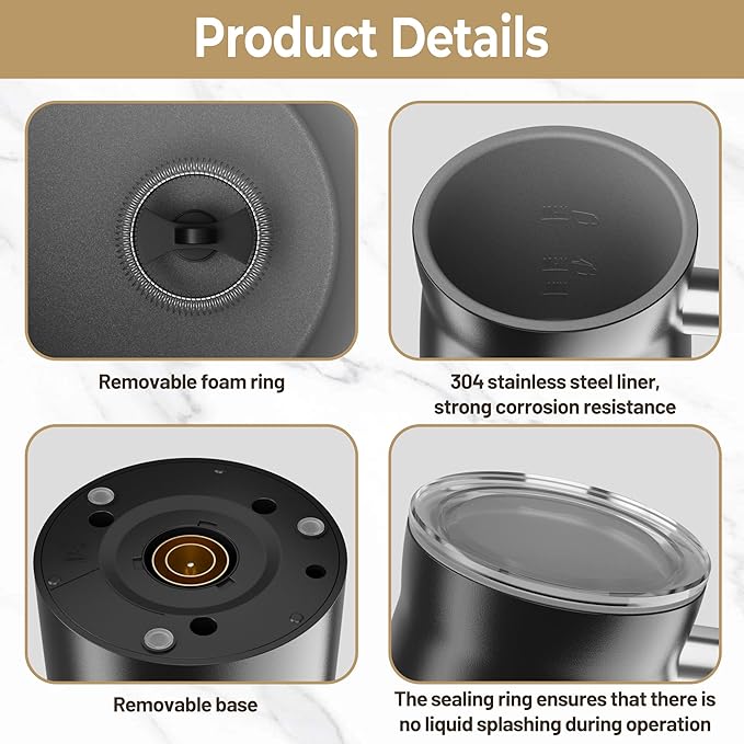 - Simple Cleaning: ABS outer shell, non-stick coated stainless steel interior, you can use a cleaning brush to clean the interior to remove milk stains. When cleaning the exterior of this milk heating frother, please remember to avoid water contacting the bottom and exterior, wipe it clean with a damp towel