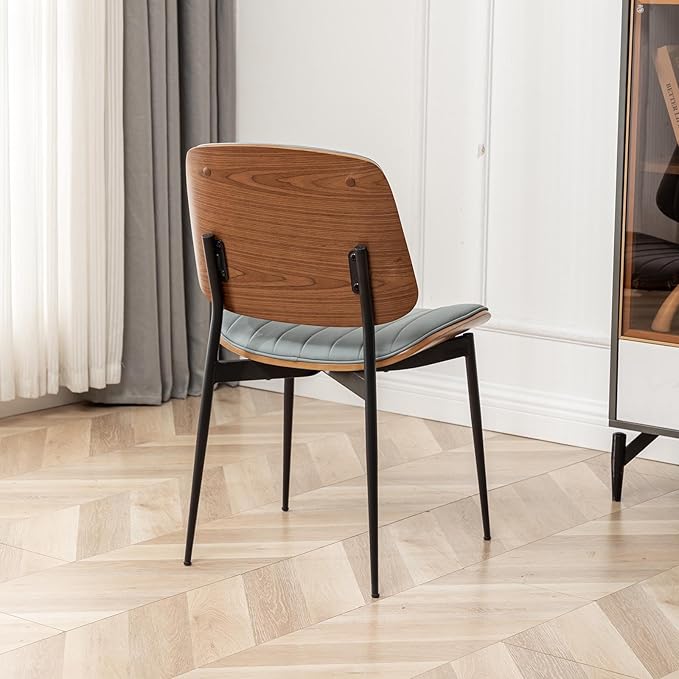 - Modern Design and Material: LUNLING Dining Chairs with mid-century style dining chair's elegant and generous appearance.Matching any homes and offices.Ergonomic design of perfect height and curved seat supports your back well in sitting.With solid walnut bentwood&faux leather back and seat, metal tapered legs for durability and longevity.Our chair with adjustable foot pads, adjust balance you want and floor protectors.
