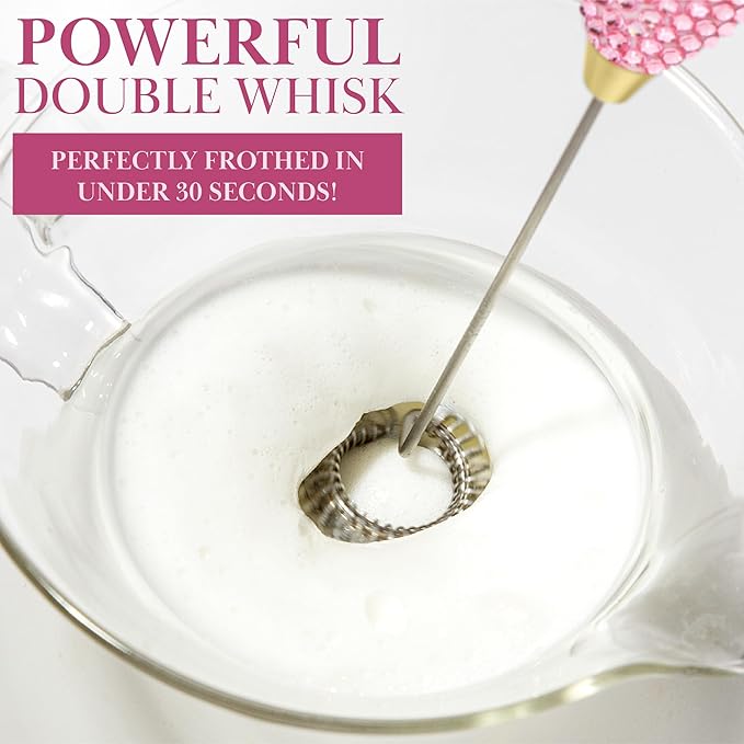 - SHINE ON: Featuring over 1,200 pink rhinestones, this milk frother is an epic countertop statement.