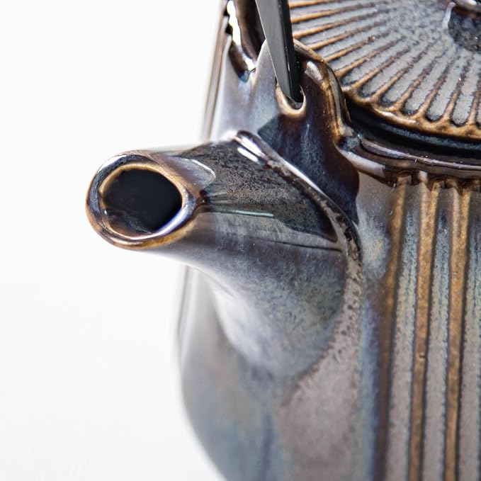 Yundu Brown Ceramic Teapots, 1000ml/33.8oz Tea Kettle, Enough for 4 Cups, Tea pot with infusers for loose tea, Striped Tea Pot with Removable Tea infuser