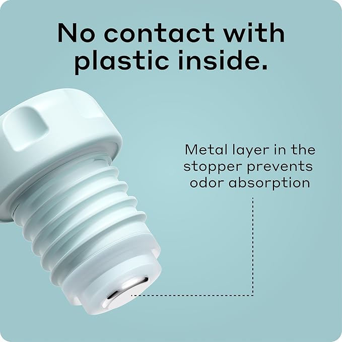 - SAFETY FIRST: 18/8 high grade rust-free stainless steel metal bottle. BPA-free, food-grade steel, food-grade plastic and silicone. Stopper has extra metal layer to prevent odor absorption. Your drink will never touch any plastic
