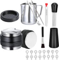 - 51mm Espresso Coffee Maker Set: Professional espresso machine accessories tools barista set (24pcs), including 1* 2 in 1 Dual Head Coffee Leveler, 1*Espresso wdt tool, 1* 350ml With scale milk frothing pitcher, 1* coffee tamper mat, 16* coffee decorating stencils, 1* Grinder cleaning brush, 1* latte art pen, and 1* coffee stirring spoon. This Coffee set helps create exquisite coffee art and enjoy consistently high-quality espresso, making it an ideal choice for making delicious and rich coffee