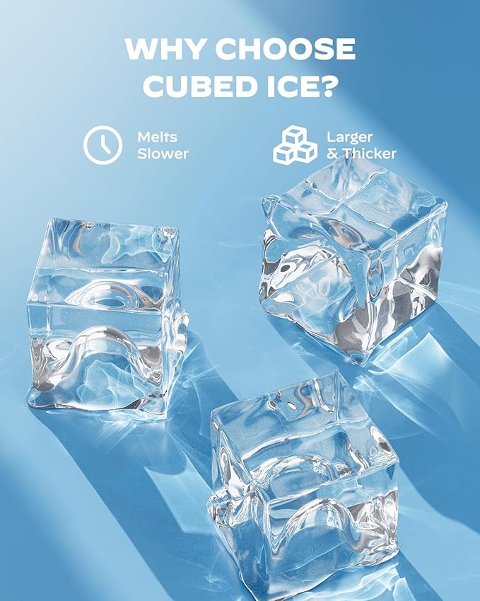 - Premium Ice Cubes: Unlike bullet ice cubes, this Silonn ice maker produces crystal-clear ice cubes that melt slowly, are odor-free, and cause less dilution. Plus, you can control ice thickness for smoothies and cold beverages, customizing the style of ice that you prefer