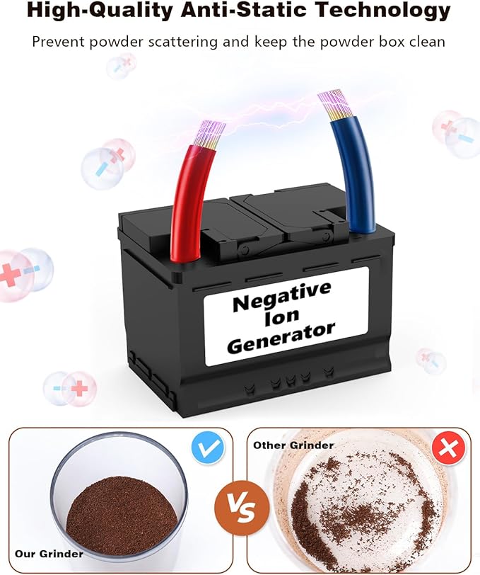 - Excellent Negative Ion Design: Effectively reduces static electricity, preventing grounds from splashing and ensuring smooth flow for clean tabletop and cup wall, a standout feature of this espresso grinder