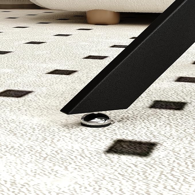 - 2.Reinforced Metal Structure: In addition to the thick glass top, the coffee table is supported by black crossed metal legs for a rugged and durable construction. Additionally, adjustable foot pads enhance overall stability and protect the floor from getting damaged . What is more , it can avoid making noises
