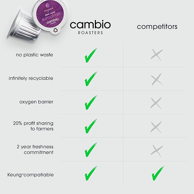 - Keurig Compatible Coffee K Cups, Just Better: Cambio Roasters is the only aluminum coffee k cup in the market, with a goal of developing better tasting, longer lasting freshness, and a positive impact on the environment through infinite recyclability.