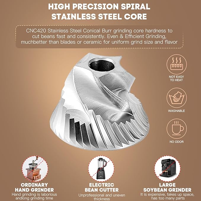 - [Efficient & Durable Design] Our portable coffee grinder features a high-precision CNC420 stainless steel conical burr grinder core, ensuring even and efficient grinding for optimal flavor. Superior to blade or ceramic grinders, it's built to last