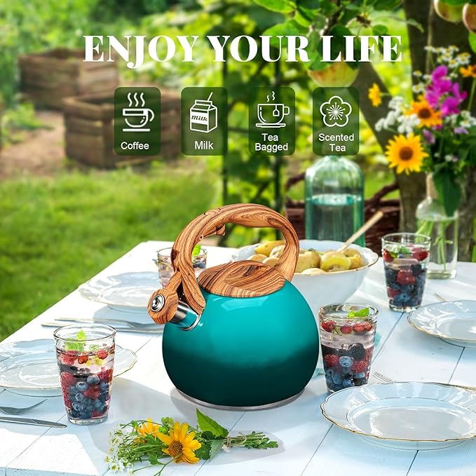 - 【Immerse in Jungle Kitchen】The GGC tea kettle features a mysterious gradient green and paired with a wood pattern handle, adds a touch of rustic elegance and natural charm to your kitchen