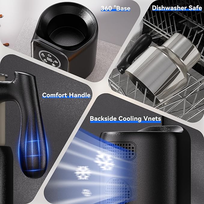 - Special Feature : Automatic milk frother with 5 functions, Compact Design, Easy to Clean, Split stainless steel cup body, Temperature Display Automatic milk frother with 5 functions, Compact Design, Easy to Clean, Split stainless steel cup body, Temperature Display