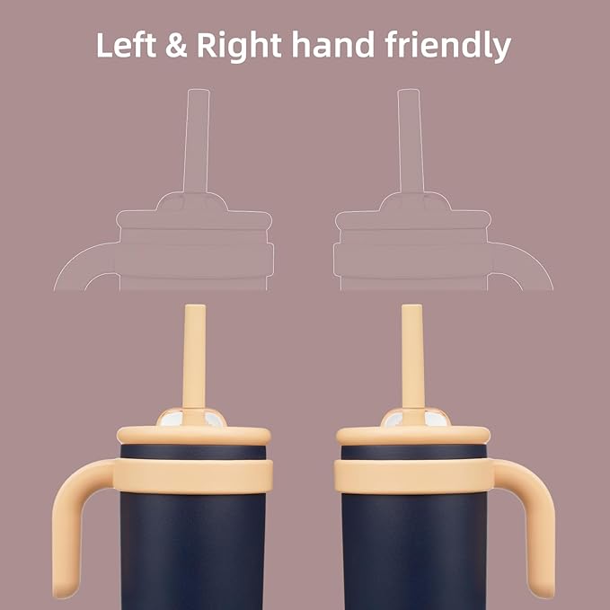 14 oz Tumbler with Side Handle, Insulated Water Bottle with Straw and 2 in 1 Lid, Stainless Steel Cup Travel Coffee Mug for Sports Office Gym,Navy Blue