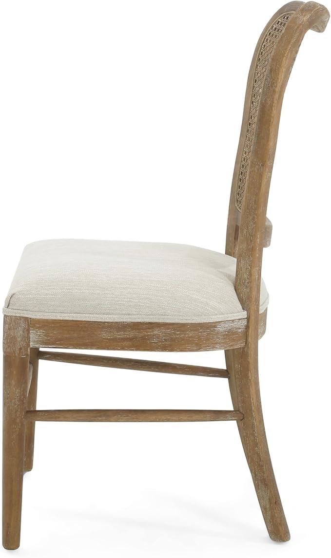 Christopher Knight Home Collda Modern Upholstered Dining Chairs, Wicker Backrest, Vintage Style for Homebar Living Room Kitchen Counter (Set of 2), Dark Brown+Beige