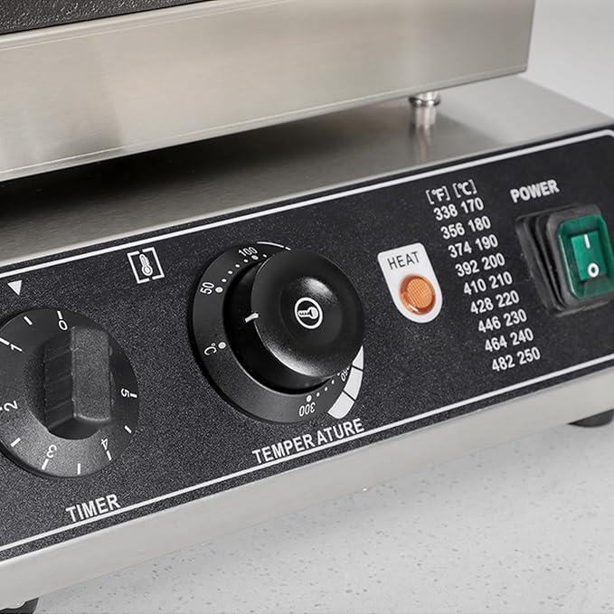 - Humanized Functions: Designed with temperature and time control knobs (122-572℉ / 50-300℃),this waffle iron can be adjusted to your demand. You can customize it to make your personalized waffles, whether you want a crispy or a fluffy taste. And it is easy to operate thanks to the individual ready and beep lights, which will remind you to add batter and indicate the waffles are cooked, no need to keep an eye on it all the time.