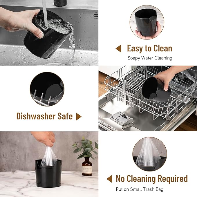 - Easy to Clean: This knock box features a knock bar without rubber, making it easier to clean the inner liner. You can simply empty the grounds, rinse with water, or place it directly in the dishwasher. Alternatively, if you put a garbage bag on the coffee knock box, you won’t need to clean it.
