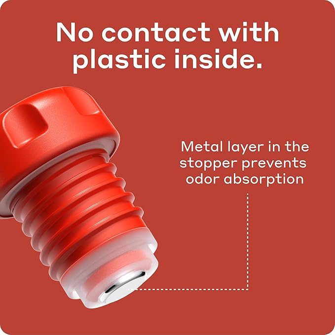 - SAFETY FIRST: 18/8 high grade rust-free stainless steel metal bottle. BPA-free, food-grade steel, food-grade plastic and silicone. Stopper has extra metal layer to prevent odor absorption. Your drink will never touch any plastic