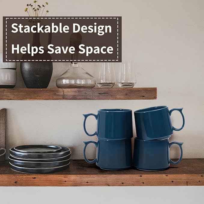 Large Coffee Mugs Set of 4, 19 oz Stackable Ceramic Coffee Mug, Coffee Cups with Large Handle for Latte, Cappuccino, Milk, Tea, Dishwasher & Microwave Safe, Ideal Gift for Men, Women - Blue
