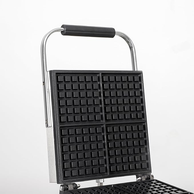 Commercial Waffle Maker, 4pcs Rectangle Waffle Iron, Non-Stick Industrial Belgian Waffle Maker Stainless Steel 110V Temp and Time Control, Suitable for Restaurant Bakeries Snack Bar Family