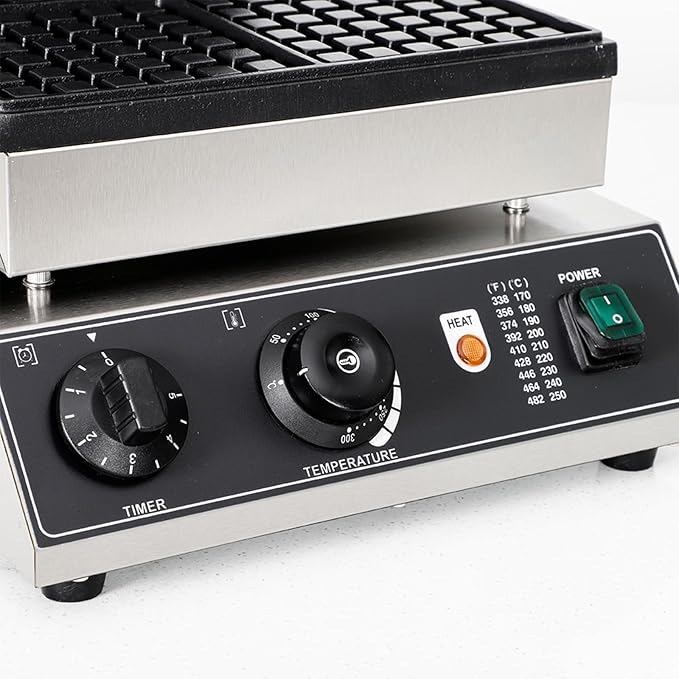 - Humanized Functions: Designed with temperature and time control knobs (122-572℉ / 50-300℃),this waffle iron can be adjusted to your demand. You can customize it to make your personalized waffles, whether you want a crispy or a fluffy taste. And it is easy to operate thanks to the individual ready and beep lights, which will remind you to add batter and indicate the waffles are cooked, no need to keep an eye on it all the time.