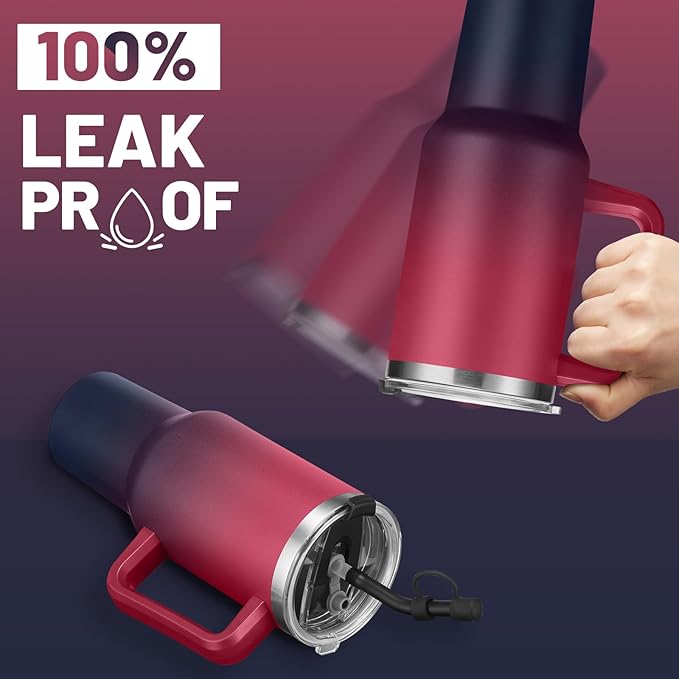 - Advanced 2-in-1 Leakproof Lid: Switch between smooth sipping (straw mode) and quick gulps (chug mode) with our patented screw-on lid—engineered to be pop-off proof with a thickened silicone seal for 100% leak resistance. The 360° rotatable lid works for both left- and right-handed users