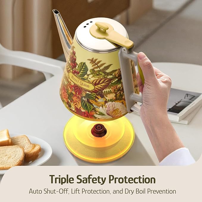 Hazel Quinn Retro X Eduardo Recife Collaboration Electric Kettle- 1 Litres / 34 Ounces Retro Small Tea Kettle, Double Wall, 304 Stainless Steel, 800W Fast Boiling, Cordless, BPA-Free, Auto Shut-Off