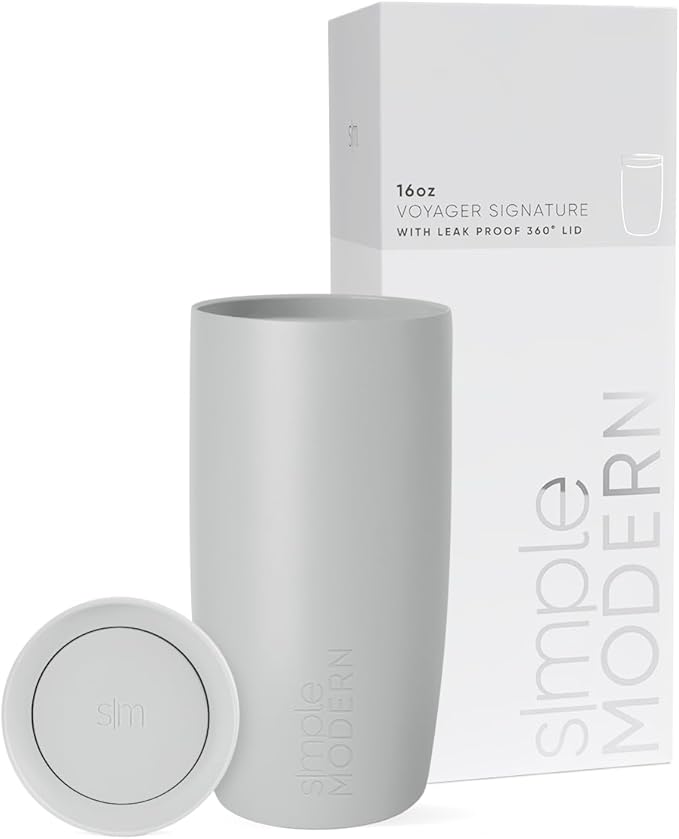 Simple Modern Travel Coffee Mug Tumbler with 360° Lid | Ceramic-Lined Insulated Stainless Steel Cold Brew Iced Coffee Cup Thermos | Gifts for Women Men Her Him | Voyager Signature | 16oz | Ice Gray
