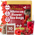 FreshDrinkUS, Premium 10 Hibiscus Flowers Tea Bags, 100% Natural, Pure from Hibiscus Flowers. Loose Flower Herbal Tea. No Sugar, No Caffeine, No Gluten, Vegan.
