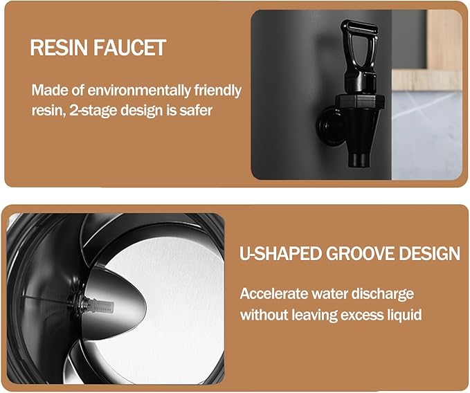 - Premium Food Grade Stainless Steel:Our stainless steel beverage dispenser adopts food-grade stainless steel inner and outer body, and the exterior is grilled to make it more beautiful, durable and safe. This also maintains its shine over time, increasing its effectiveness in keeping drinks warm