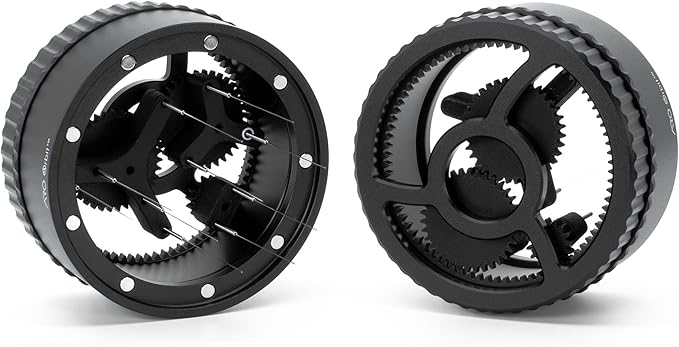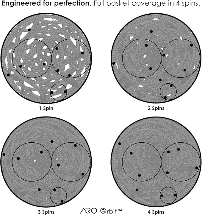 - Novel and Innovative Gear Design: Features three separate gears working in harmony for optimal mixing, distribution, and fluffing in as little as four spins. The extended-armed gear whips the pins at high velocities slicing through any clumps in its path. The short-armed gear bounces the pins back and forth across the basket to scramble and mix the grounds, ensuring even distribution and a level bed. The small gear pushes and pulls grounds near the edge for complete basket coverage. Note: The gears are made from additively manufactured plastic.