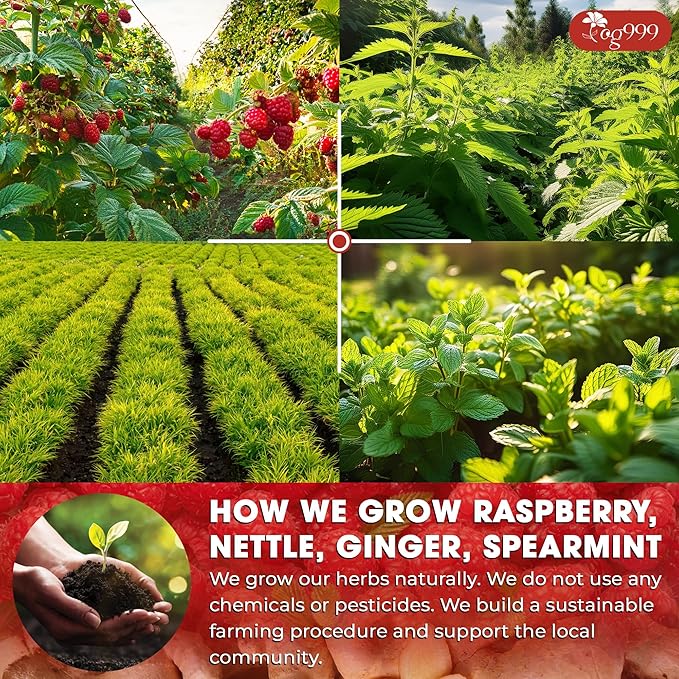 - ☘️ 100% NATURAL HERBAL INGREDIENTS: We offer this tea from the blend of Red Raspberry Leaves, Nettle leaves, Spearmint leaves, and Ginger. The herbal leaves are grown in our sustainable family farms. We follow strict international standards without Pesticides or Herbicides used on the leaves. Ensure unsurpassed quality for our customers. That's Our Promise. From Our Natural Farm to Your Cups!