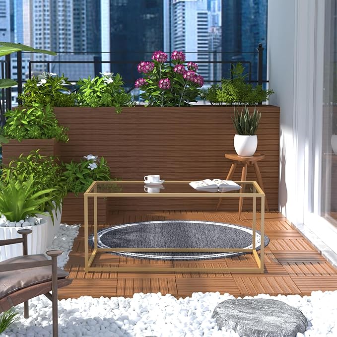 - [Minimalism Style] - The smooth metal frame and clear tempered glass are subtly combined in a unique geometric, this minimalist modern coffee table for living room can well integrate into various room decors and styles.