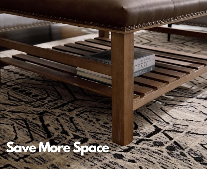- SPACE SAVING- The coffee table is designed with a storage space with a wooden shelf, which is convenient for storing magazines, slippers and other small objects, making the desktop more tidy and organized, while also enhancing practicality and space utilization.