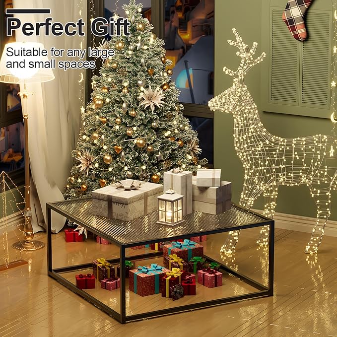 - [Easy Assembly&Clean] -Only need 5 minutes to set your coffee table and use right away. Corrugated tempered glass with black square metal frame without extra decoration, minimalist lines will never go out of style. The glass coffee table's smooth material allow for easy wiping and clean,keep your desk clean at all times to save your energy. you will get a pretty and fancy coffee table!