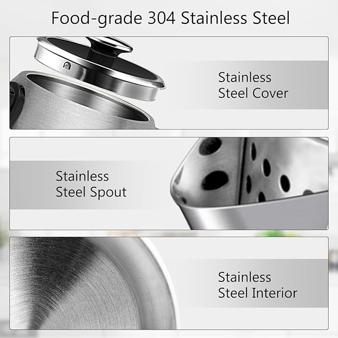 - USER-FRIENDLY DESIGN: Our kettle is designed with a V-shaped gathering spout, making it easy to pour water without dripping or wetting the table top. The thermometer clearly displays the water temperature, allowing you to easily monitor the heat. The wide opening of the kettle makes it easy to reach inside and clean thoroughly.