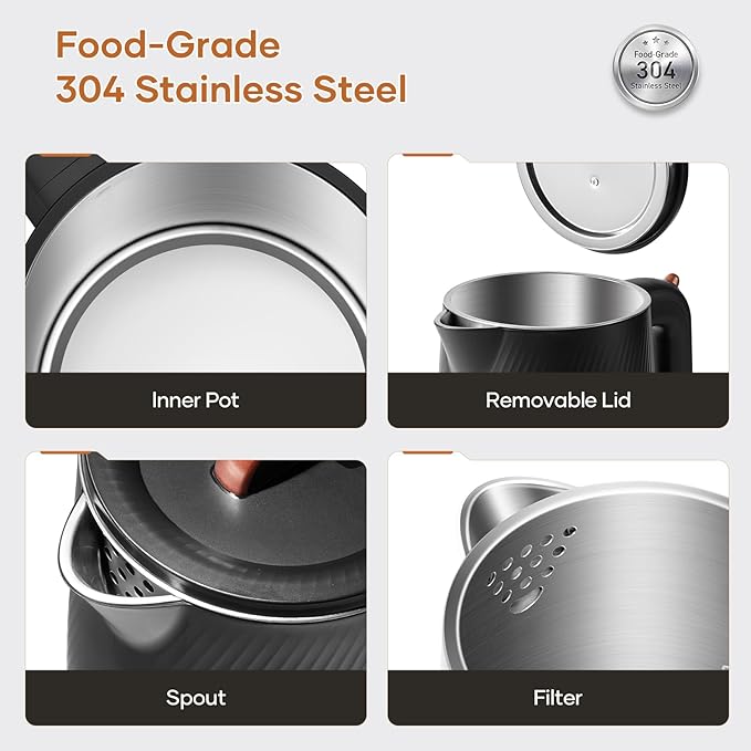 - Sleek, Stylish & Easy-to-Clean – Featuring a modern, minimalist design that fits beautifully in any kitchen, this kettle combines elegance with practicality. Plus, its detachable lid makes cleaning effortless, so your kettle stays as spotless as the day you bought it.