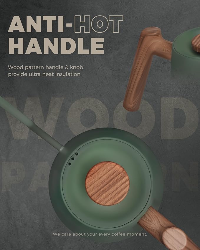 - STYLISH DESIGN WITH WOOD PATTERN HANDLE: This 34oz tea kettle features an ergonomic wood grain heat-resistant handle for comfortable pouring, alongside an easy-to-read LED display that shows real-time temperature readings, ensuring precise brewing without guesswork.