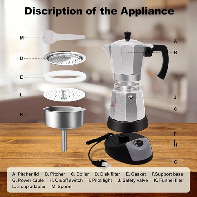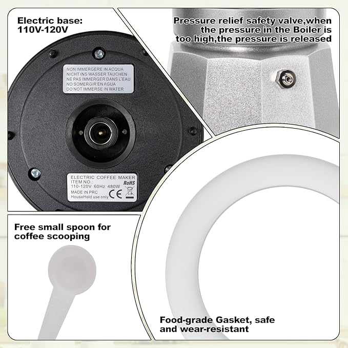 - Electric Moka Pot for Efficient Brewing: Experience the convenience of our electric 5-6 Cup moka pot. Simply fill, plug in, and press start for authentic Italian coffee in minutes. Our moka pot brings the rich aroma of espresso to your home effortlessly(110V)