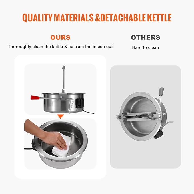 - Simple Operation, Lasting Warm: 3 fantastic switches control the whole unit: Warmer, Stirrer, and Pot Heater. Simplified control streamlines the operation, making it easy for any staff member to use. The warming deck features a 60W heating tube underneath. Once the popcorn machine begins cooking, finished popcorn will fall to the warming deck and stay fresh until you're ready to serve. Besides, the 60W warmer light brightly illuminates your popcorn. Let them shine and catch the eyes of everyone!