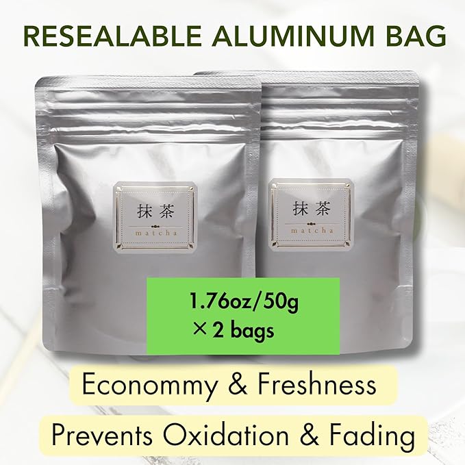 - SUPERB VALUE, OPTIMAL FRESHNESS – Each package contains 1.76oz/50g of premium ceremonial grade matcha, providing 25 servings at an affordable price, offering the highest quality Japanese ceremonial matcha for your daily enjoyment. Our matcha is carefully packaged in an airtight resealable bag to preserve its freshness, prevent oxidation, and maintain the vibrant green color, ensuring the finest matcha experience with every cup.