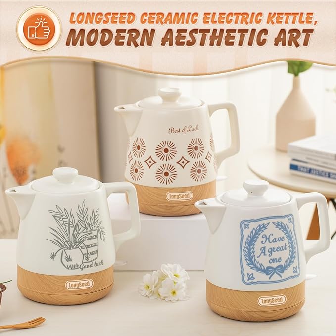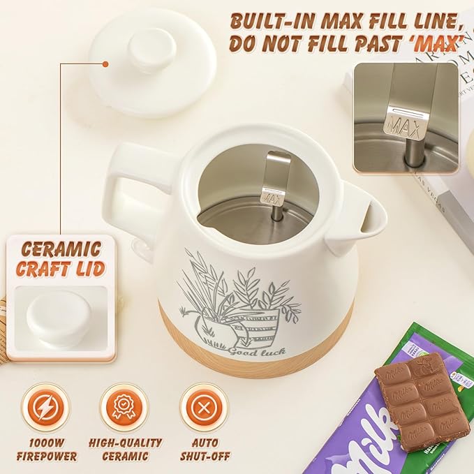 - Fast Boiling: 1000 watt Heating power,this ceramic electric kettle boils up to 1 liter (1 qt) of water faster than a microwave and safer than a stovetop pot. No need to wait for a long time, brew hot tea or coffee anytimeperfect for hectic mornings. Good kitchen assistant