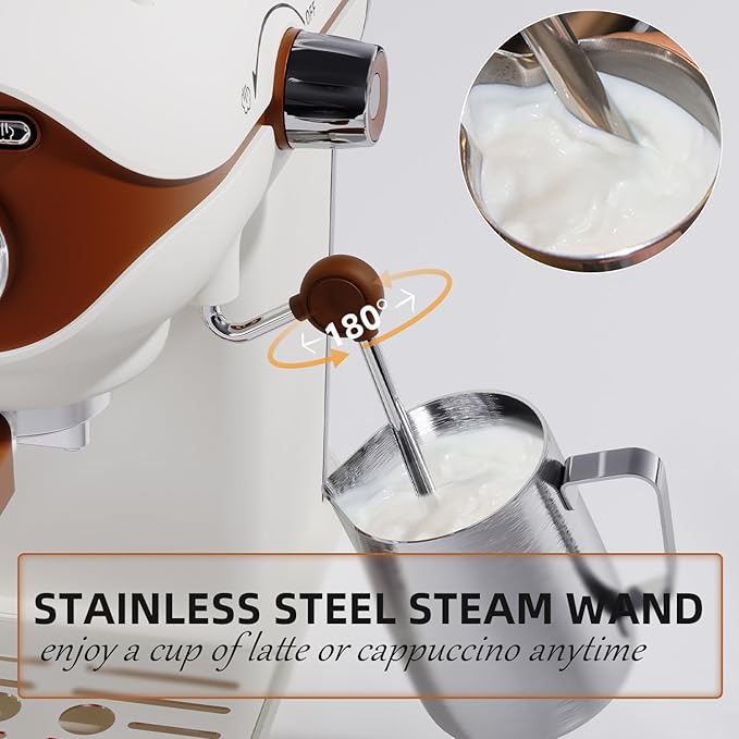 - Powerful Milk Frother: Stainless steel steam wand adjustable for making a creamy, rich and silky microfoam milk for latte or cappuccino